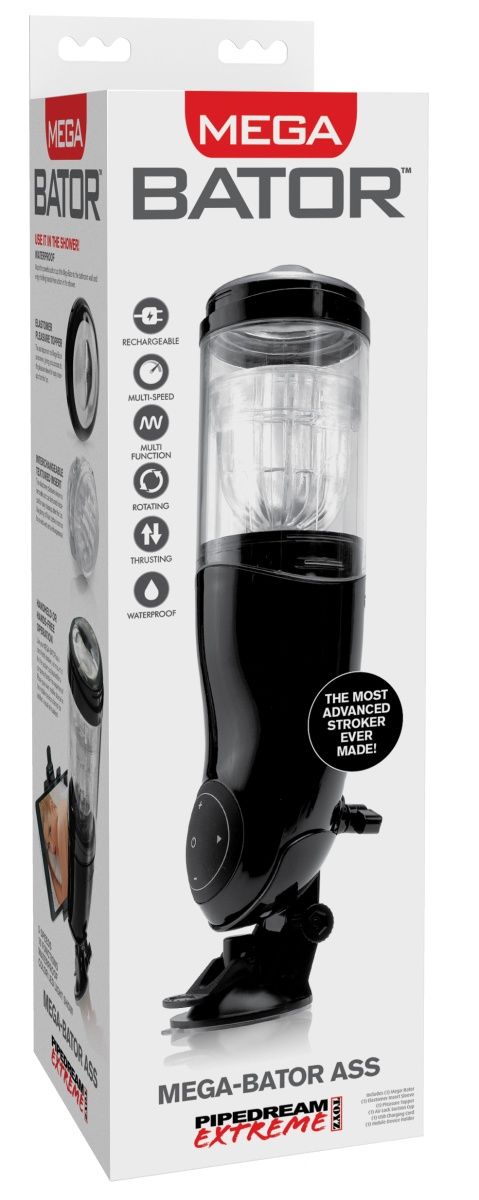 Многофункциональный, стильный, а главное – автоматический мастурбатор, который позволит вам абсолютно ничего не делать во время сольной игры Pipedream Extreme Toyz Mega-Bator Ass. Полностью автоматизированная работа игрушки позволит расслабиться и насладиться процессом, а мощная присоска у основания – сделать игру более реалистичной. Расположите мастурбатор под удобным углом на стенке в ванной, и сочетайте приятное с полезным! Инновационный мастурбатор с мигающими светодиодами – это большой пластиковый тубус, в который помещена мягкая, очень эластичная и хорошо текстурированная вставка, имитирующая вход в анус. Внутри вставки есть небольшие и очень мягкие ребрышки, которые делают потрясающий эротический массаж. Выберите один из 10 существующих режимов и одну из 5 скоростей вибрации и насладитесь эротическим массажем, при котором вам не нужно делать ровным счетом ничего! Вставка мастурбатора съемная и её легко чистить после игры. Корпус и внутренние части игрушки полностью водонепроницаемые, поэтому вы смело можете использовать её под душем. Как можно разнообразить удовольствие? Механизм крепления позволит присоединить игрушку на стол, стенку или любую другую поверхность, наклоните мастурбатор Mega-Bator Ass под определенным углом и имитируйте любимые позы в сексе. В комплекте с игрушкой также есть зажим для мобильного устройства. Он регулируется по длине, поэтому в нём вы сможете расположить и смартфон, и планшет. Включите на своём гаджете любимый фильм и усильте удовольствие визуальным воздействием. Рабочая длина - 10 см., внутренний диаметр - 3,8 см. Максимальная длина зажима для мобильных устройств - 14 см.