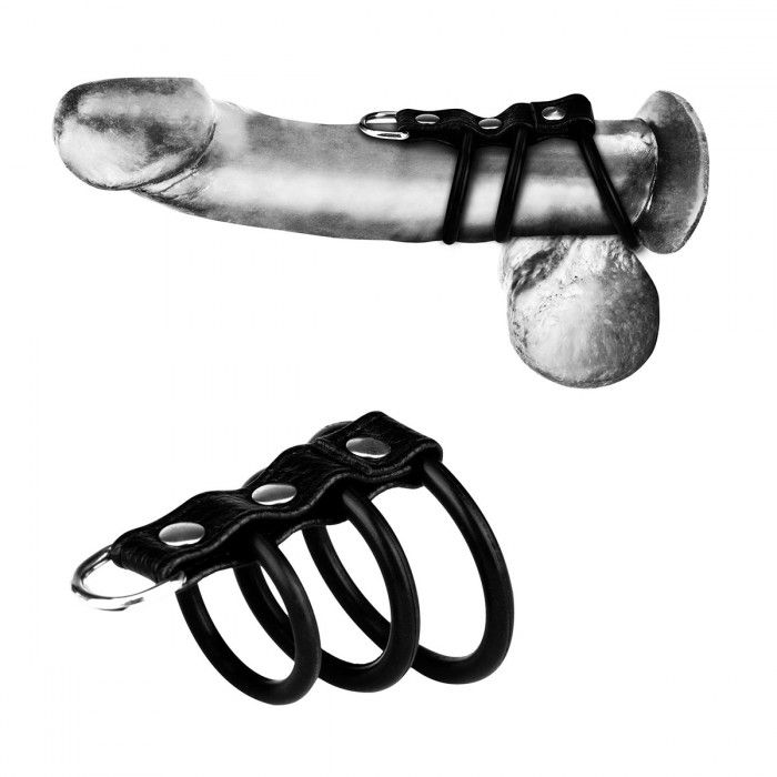 Настоящие силиконовые врата ада - это идеальный способ заточить любой член в чистилище для приятных мук. Уникальный дизайн выполнен из нескольких силиконовых колец, связанных одним ремешком. Самое большое кольцо предназначено для мошонки, а остальные 2 кольца фиксируют половой член. Особенное D-крепление на конце идеально подходит для использования с любым поводком.