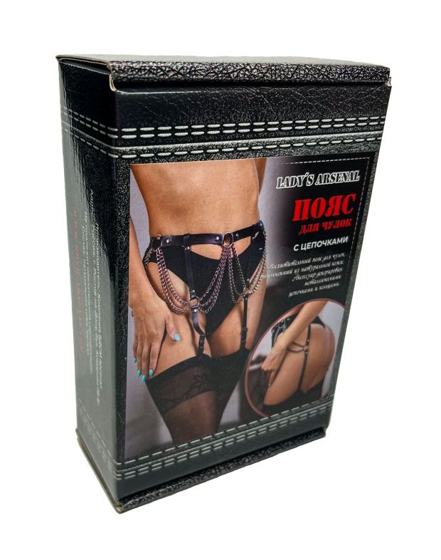 Утонченный и сексуальный кожаный пояс для чулок, выполнен в черном цвете. Пояс декорирован металлическими кольцами и цепочками, которые эффектно подчеркивают фигуру и создают эротичный, соблазнительный образ. Пажи для чулок удобно регулируются по высоте. Обхват талии тоже регулируется с помощью металлической пряжки. Этот аксессуар идеально дополнит ваш образ и создаст игривое настроение. Подойдет на размер S-M.
