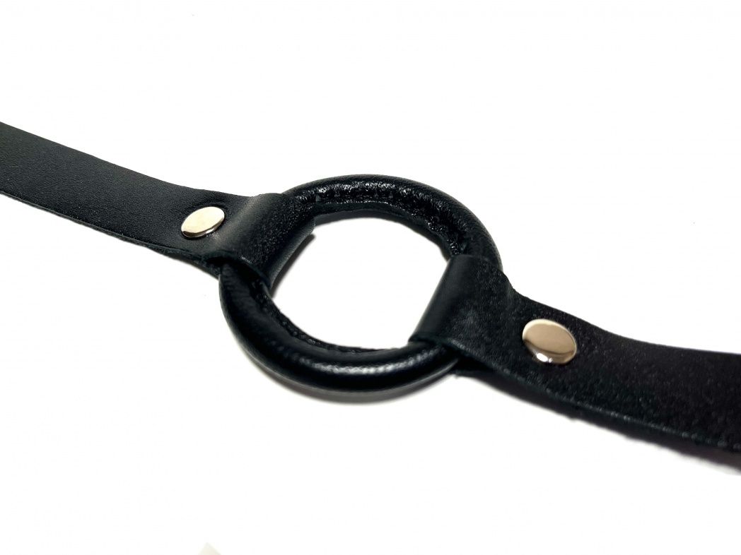 Строгий и надежный кляп, выполненный из натуральной кожи черного цвета. В основании использовано сварное металлическое кольцо, обтянутое нежной овечьей кожей. Обхват удобно регулируется с помощью металлической пряжки. Такой кляп станет отличным элементом БДСМ игры, функциональным и комфортным в использовании. Материал: натуральная кожа, металл Диаметр кольца - 4,5 см. Ширина ремешков - 1,8 см.