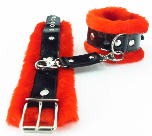 Милый и яркий аксессуар - наручники. Сочетание яркого меха и лаковых деталей не оставит вас равнодушными! Размер регулируется при помощи застежки. Соединяются между собой при помощи ремешка на карабинах. Ширина наручников - 5,5 см.