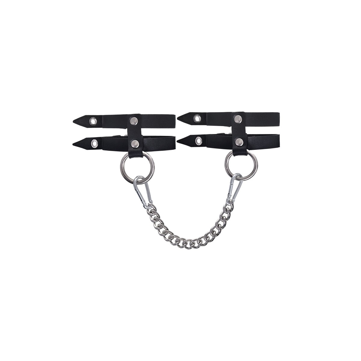 Эти однослойные кожаные оковы из двух ремешков могут стать стильным аксессуаром, а могут послужить вашим целям по своему прямому назначению. Частичное обездвиживание и невозможность двигать руками или ногами дают вам полную власть над партнером – взрослые игры для взрослых. Наличие двух колец и карабинов, соединенных между собой металлической цепочкой, позволяет использовать изделие как раздельно – аксессуар-манжеты, так и как оковы для фиксации. К широким металлическим кольцам также можно присоединить и другие аксессуары при помощи карабинов. Благодаря универсальному размеру оковы могут использоваться и мужчинами, и женщинами. Размер легко регулируется с помощью металлических пряжек, органично вписывающихся в общий стиль. Длина манжет - 30 см, ширина ремешков - 1,6 см. Длина сцепки - 19 см.