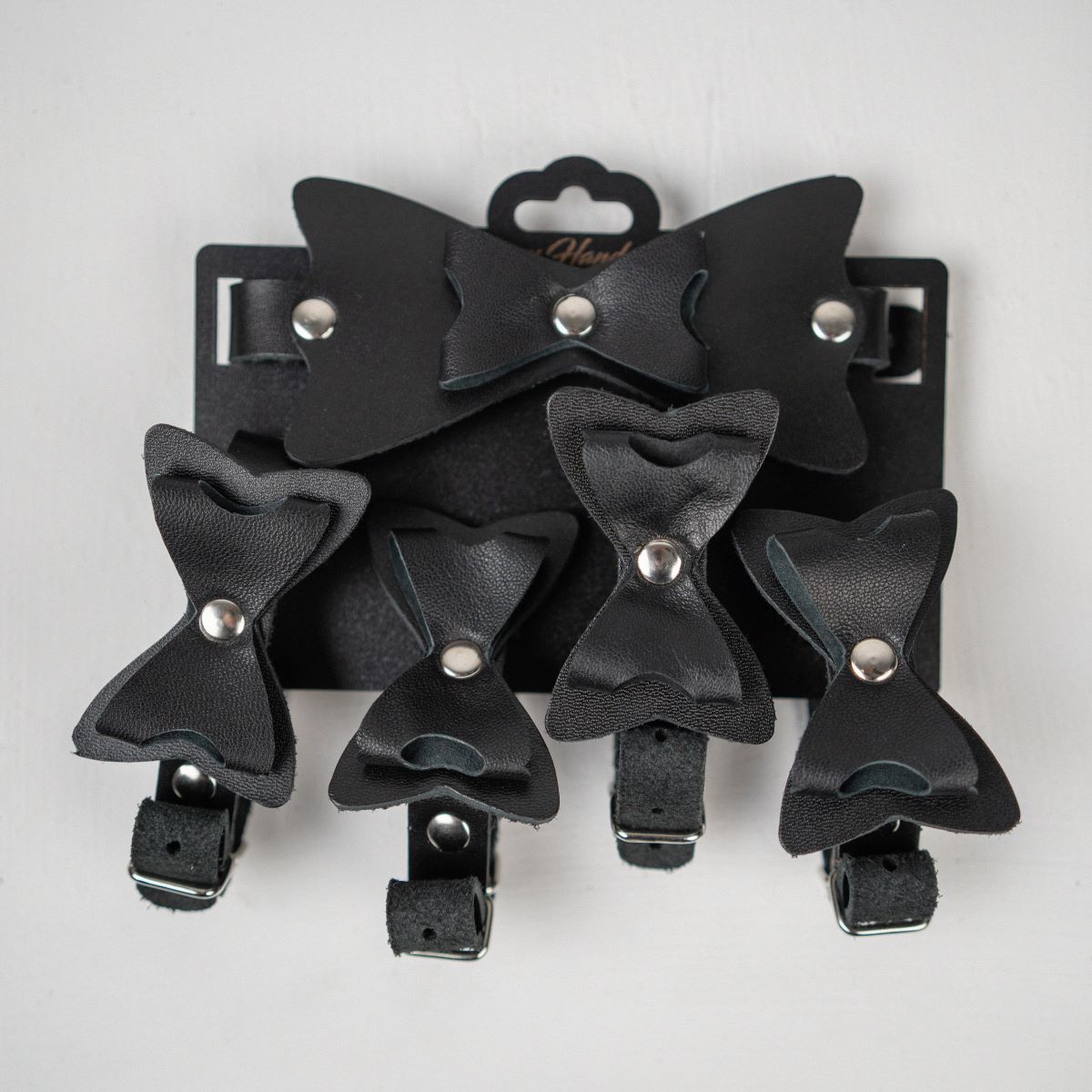 В набор входит чокер, наручники и оковы. Чокер из натуральной кожи с декоративным элементом в виде большого галстука-бабочки черного цвета и бантиком поменьше. «Бабочка» полностью облегает шею, что определенно вносит разнообразие в любовную игру. Наручники из натуральной кожи с декоративным элементом в виде двухслойного бантика черного цвета. Благодаря классическому дизайну наручники можно использовать не только для фиксации рук в любовных играх, но и в качестве аксессуара для дополнения образа. В комплекте прочная соединительная цепочка с двумя карабинами. Оковы из натуральной кожи с декоративным элементом в виде двухслойного бантика черного цвета. В комплекте прочная соединительная цепочка с двумя карабинами. Длина чокера - 38 см. Обхват чокера - 27,5-37 см. Длина наручников - 23 см. Обхват наручников - 13-21 см. Длина оков - 28 см. Обхват оков - 19-27 см.