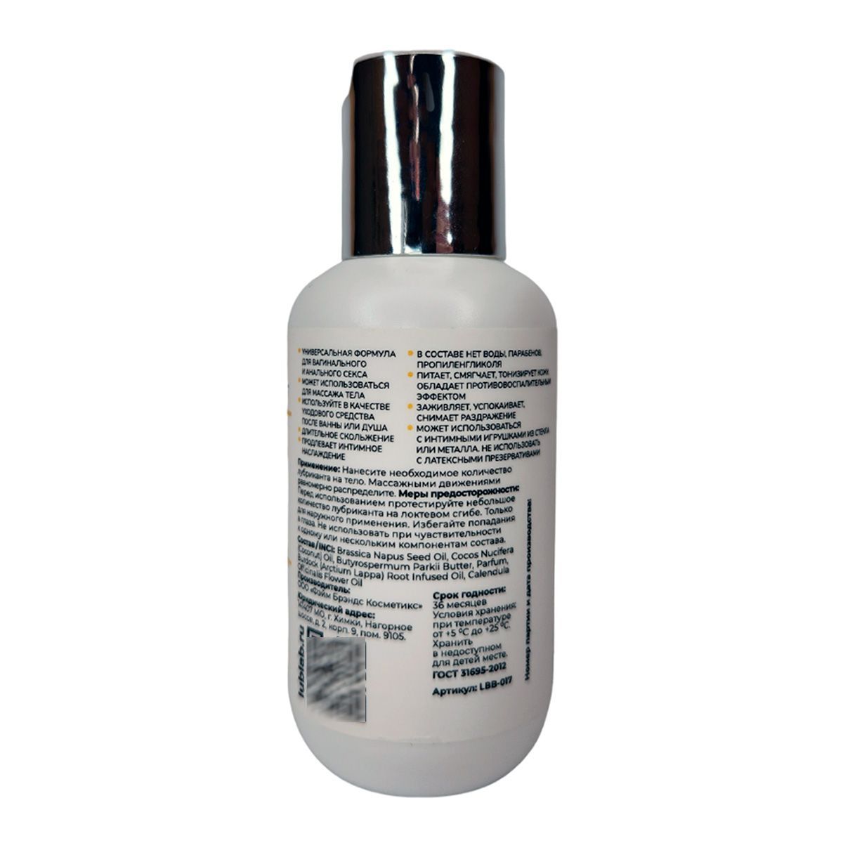 Интимный лубрикант с натуральной и безопасной ЭКО-формулой для вагинального или анального секса на масляной основе. Обеспечивает длительное скольжение, продлевает интимное наслаждение. В составе лубриканта используются масла ши, кокоса, репейника и календулы. Масла отлично увлажняют, питают и смягчают нежную кожу. Повышают упругость, оказывают антиоксидантное и противовоспалительное действие, тонизируют и снимают раздражение. Интимный гель имеет тонкий запах с нотками белого мускуса, жасмина и апельсина. Может использоваться с полиуриетановыми презервативами и интимными аксессуарами, кроме силиконовых и латексных. Отлично подходит для массажа всего тела или для секса в ванне или в душе. Используйте масло как массажное, или как уходовое, после после водных процедур.
