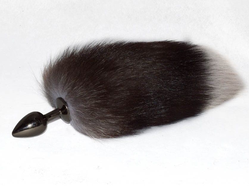 Анальная пробка с натуральным хвостиком (длиной 20-25 см). Пробка небольшого диаметра, никель. Длина хвоста - 20-25 см.